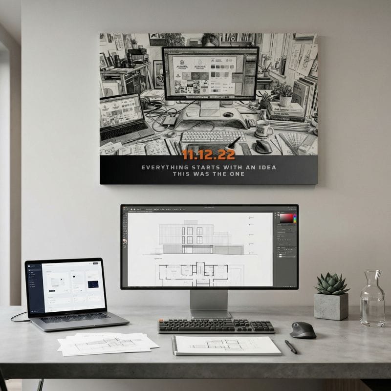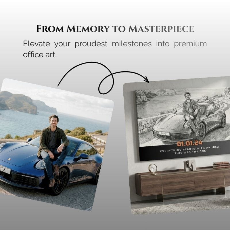 💡 Workspace Decor Tip: To manifest sharpness, maturity, and peak achievement, nothing is more fitting than a Pencil Sketch style. This style carries the vibe of an architectural blueprint—the foundation of all creation. A portrait of you next to your greatest achievement, accompanied by the quote, “Everything starts with an idea – this was the one,” is the strongest affirmation you can send to the universe. It rewires your subconscious to know: You have the power to turn ideas into reality, and your next great idea is already on its way.